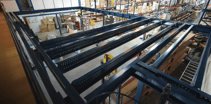Sistema ideal para aumentar a área útil para o seu espaço. O mezanino consiste em pilares e vigas que, além de armazenar cargas manuais, podem ter um ou mais pisos sobre a estante.